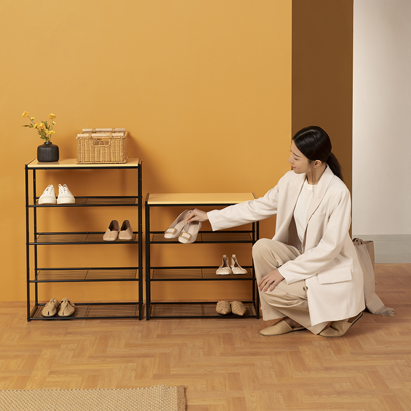 This multi-functional shoe changing rack cleverly combines a stable seating function with shoe storage in one unit. It adopts thickened boards and a high-quality carbon steel structure, ensuring the overall stability of the product and long-term durability. With a concise, neat shape and smooth lines, it can be easily integrated into various home decoration styles such as modern, Scandinavian, and Japanese. It can also be used in combination with other storage racks from our company, becoming a highlight in a corner of your home.