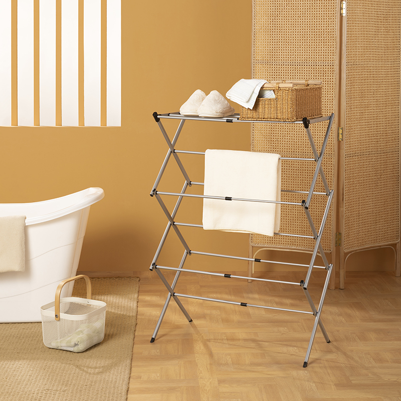 The tower-type folding clothes drying rack is especially suitable for small households. It adopts an "X"-shaped cross-stable structure, which prevents wobbling and tipping over. The main frame is made of carbon steel pipes, ensuring sturdiness and durability. Despite its small floor space, it features multiple layers of drying space for full utilization. With an integrated foldable design, it can be unfolded easily and flexibly.